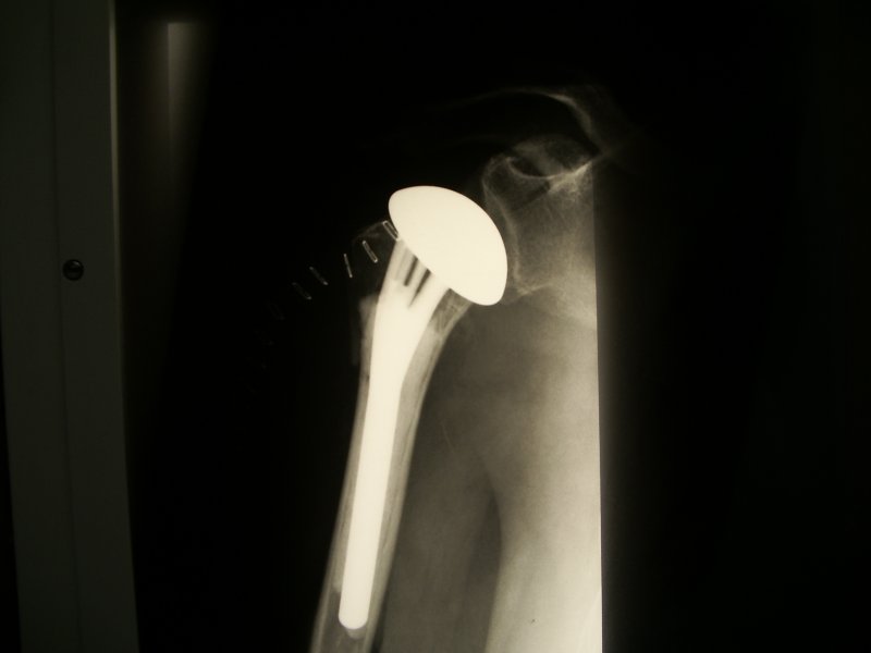 Zdjęcie endoprotezy po złamaniu pokazanym na powyższym zdjeciu
