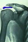 (m.biceps brachii), na dole głowa kości ramiennej. Na zdjeciu rentgenowskim na